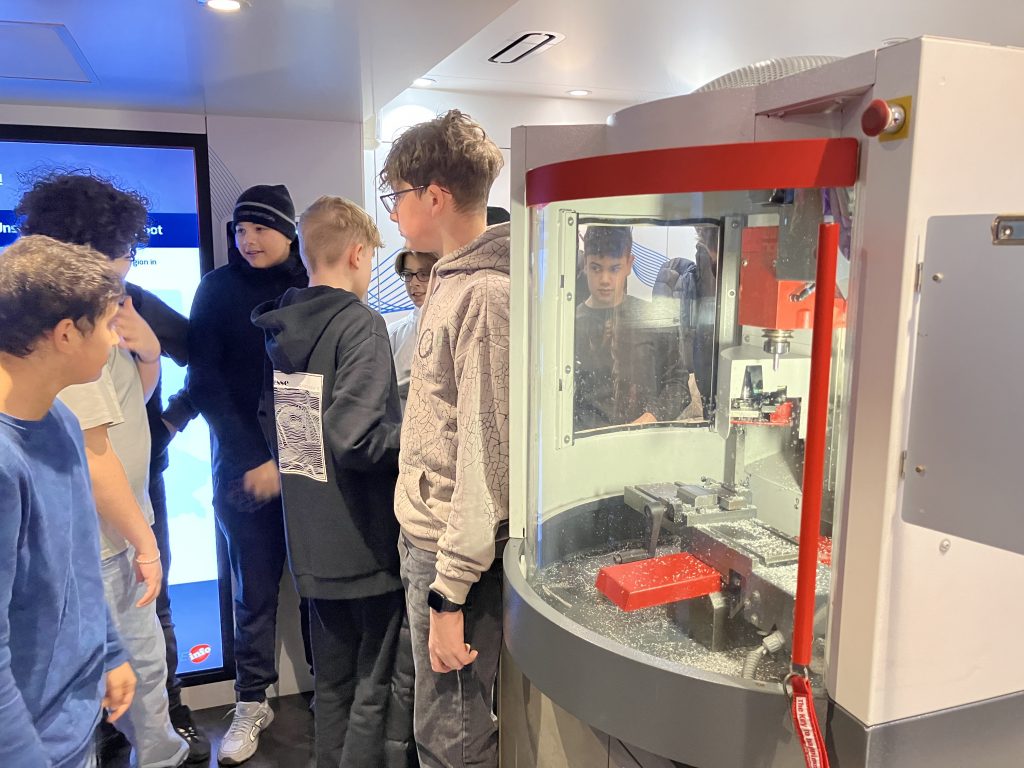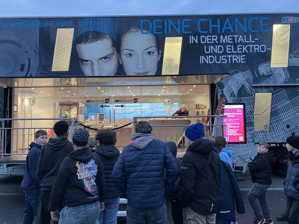 Am Freitag, den 22.11.24, besuchten wir mit dem 8er Technik-Kurs und dem 8er Informatik-Kurs den ME-Truck, der vorher vor unserer Schule aufgebaut wurde. Dies ist ein Truck der Metall- und Elektroindustrie.