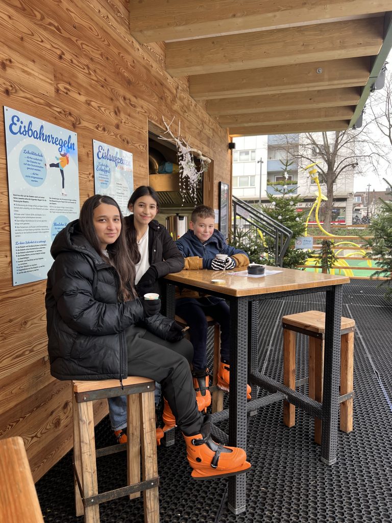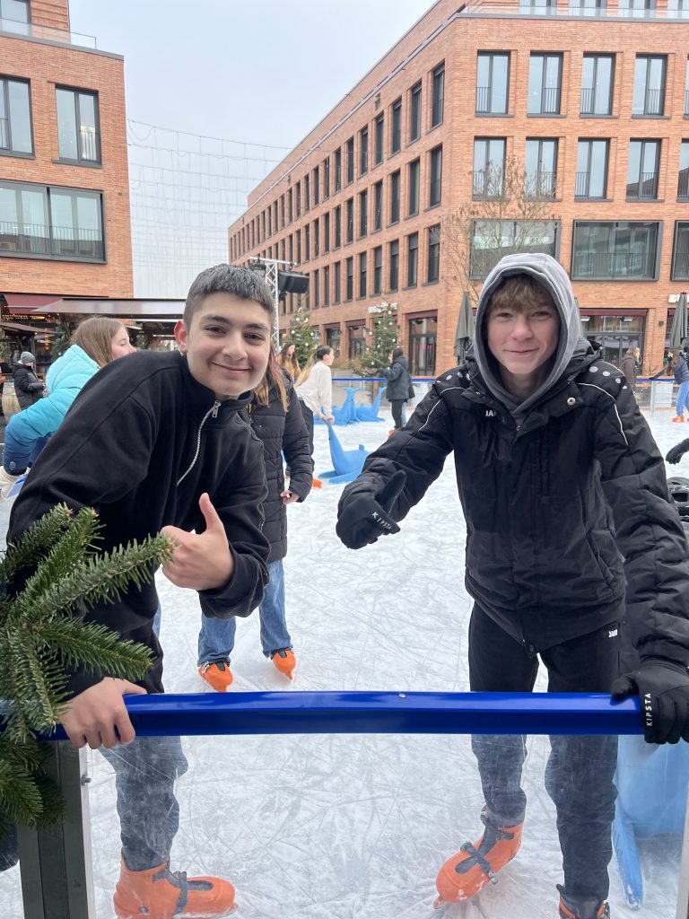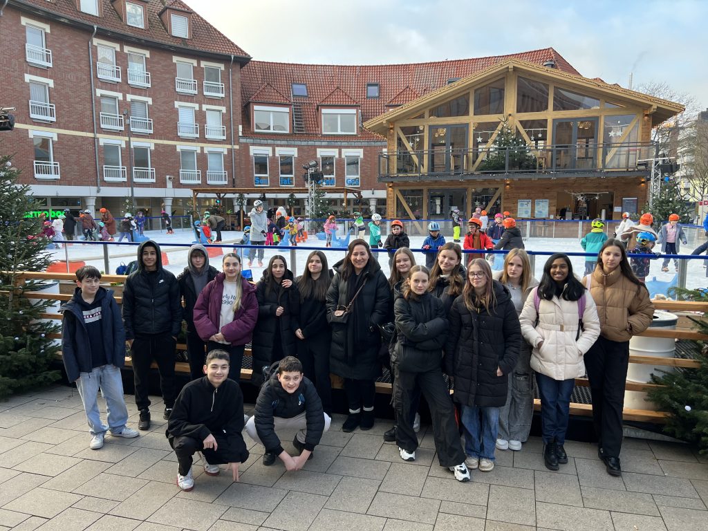 Am Donnerstag, den 12. Dezember 2024, unternahmen die Klassen 7a und 7e einen sportlichen Klassenausflug nach Monheim, um dort gemeinsam mitten im Stadtzentrum bei weihnachtlicher Atmosphäre Schlittschuhlaufen zu gehen. Dieser Ausflug, von Frau Ludwig und Frau Özatas organisiert, sollte den Schülerinnen und Schülern eine Gelegenheit bieten, gemeinsam Spaß zu haben und sich sportlich zu betätigen.