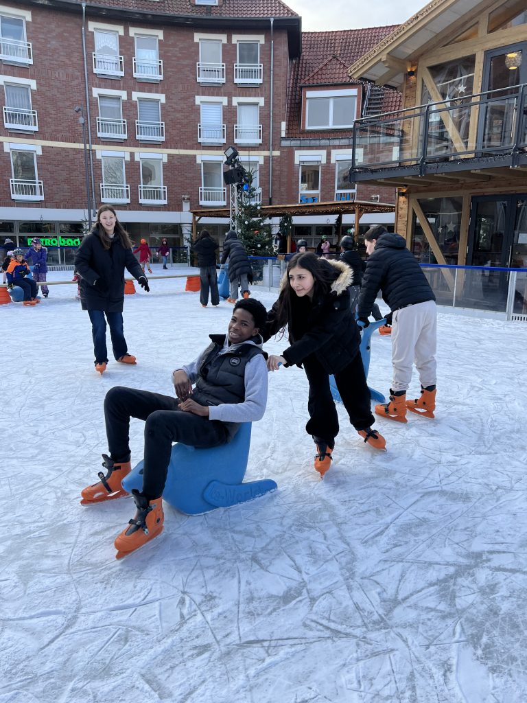 Für viele war es das erste Mal, dass sie auf Schlittschuhen standen, sodass einige anfangs noch sehr wackelig auf den Kufen waren. Doch schnell wurden sie sicherer und drehten fröhlich ihre Runden auf dem Eis. Es gab viele lustige Momente, als einige die Eislauf- Helfer-Robben vor sich her schoben, sich Schülerinnen gegenseitig halfen, das Gleichgewicht zu finden oder auf dem Eis nicht auszurutschten.